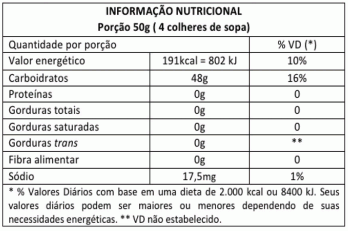 | * % Valores Diários com base em uma dieta de 2.000Kcal ou 8400kJ. Seus valores diários podem ser maiores ou menores dependendo das suas necessidades energéticas. Obs: Pode haver pequenas variações na informação nutricional, de acordo com o sabor. | ||